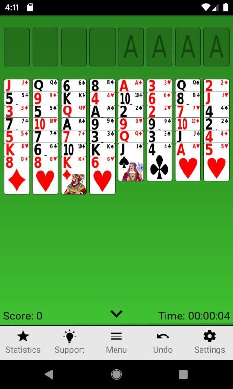 Delapan kolom kartu menunggu upaya Anda untuk membersihkannya dengan gerakan sesedikit mungkin. Mulailah bermain dengan satu setelan sampai Anda merasa nyaman, dan kemudian lihat bagaimana tarif Anda saat menggunakan dua atau bahkan keempat setelan dalam sebuah permainan.
