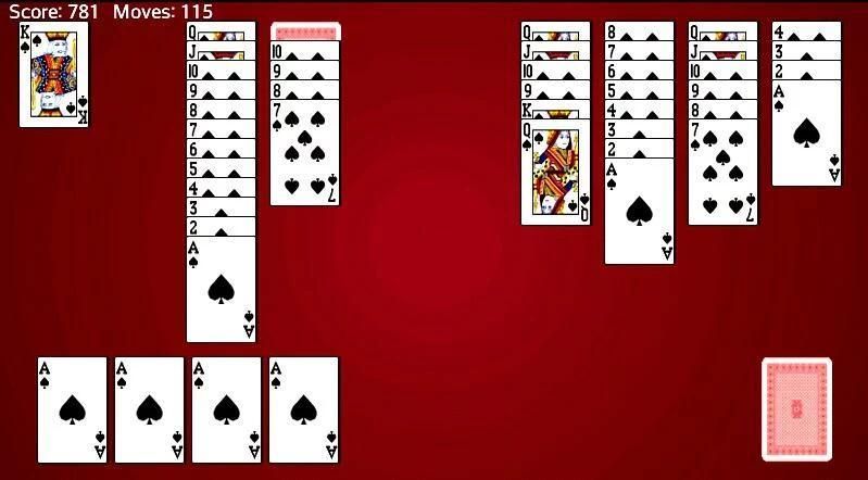 Anda dapat memindahkan kartu ke dalam kolom kosong atau menempatkannya pada kartu dengan nilai yang lebih tinggi, misalnya 4 ditempatkan di atas 5 dan seterusnya.