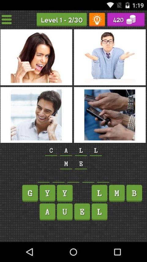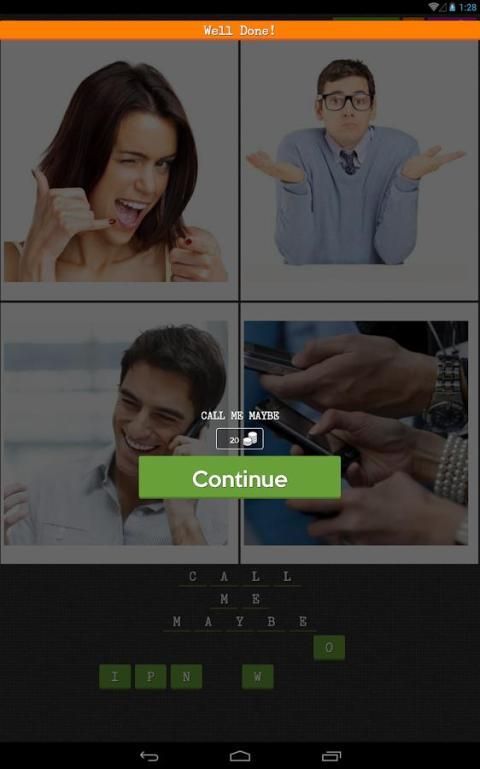 Memecahkan teka-teki dengan mencari apa yang empat gambar mengisyaratkan tentang. Gambar-gambar dapat mewakili judul, atau apa itu tentang.