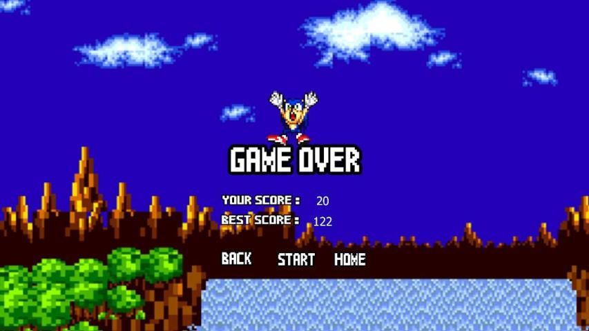 Run with the sonic super power and jump over obstacles and enemies run away from them as much as you can