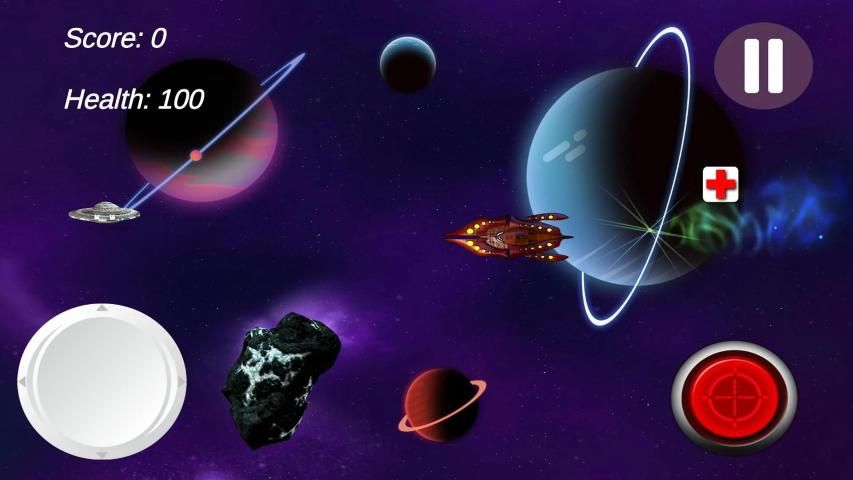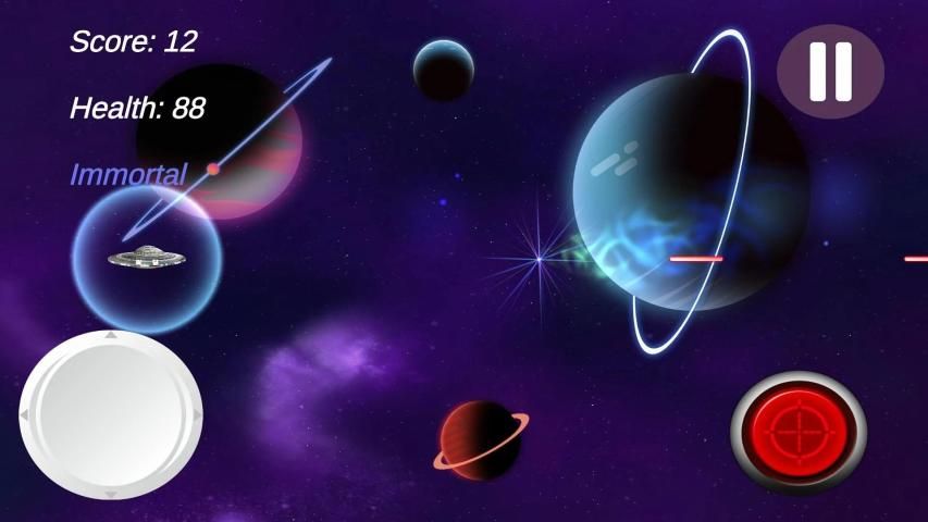 Fight on a flying saucer, destroy enemies, dodge asteroids and enemy ships, try to hold out as long as possible.