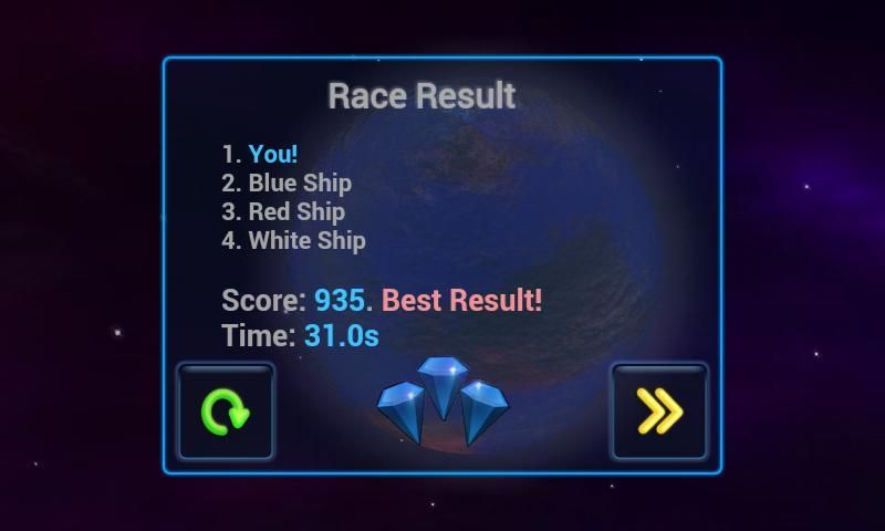 Four spaceships compete in each race. Only the winner will be admitted to the next racing!