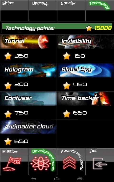 7 teknologi khusus untuk menyebarkan kekuasaan dan kekacauan. Misalnya: rudal nuklir, badai listrik, perisai planet, stasiun pertambangan.