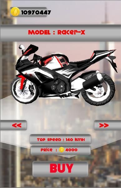 * Anda dapat memilih dari 20 sepeda motor yang berbeda: beberapa dari mereka adalah Street, Chopper, Luxury, Offroad, dll