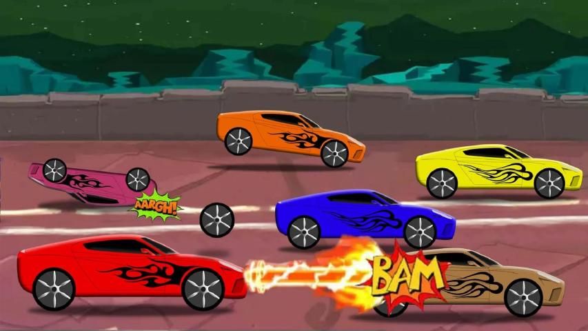 - Gunakan papan kontrol virtual untuk memindahkan mobil dan tekan tombol roket untuk menembak mobil musuh.