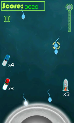 A sacred and evil game.Distant future, the Earth will exist the risk of overpopulation. Seems that human beings are doomed to die from lack of food. But you can save the planet and its people Now, in order to ensure the future of the planet, and you demand a brutal battle to help the defenseless egg groups of tadpoles struggle Players Chuosi sperm on the screen with your fingers, to prevent its exposure to the egg to cause pregnancy ... You can use condoms to reduce their aggressive eager to absorb play, show your light and clever;Bright, colorful graphics and interesting.The world of the cell waiting for your participation. The game includes three kinds of props, condoms, and two types of contraceptives, support OpenFeint.