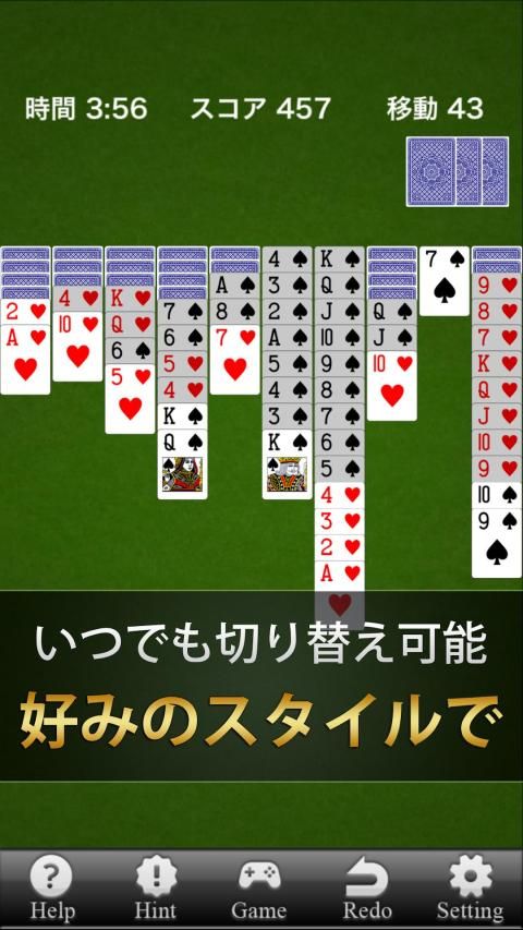 またゲーム中はスタンダードなカードの並びと、いつでも切り替えることが可能です。