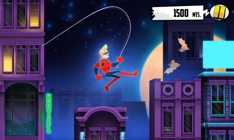 Tap your screen to throw your rope and hook yourself to a near building, tap again to release your rope and fly around the city. Avoid obstacles and try to get as far as possible.