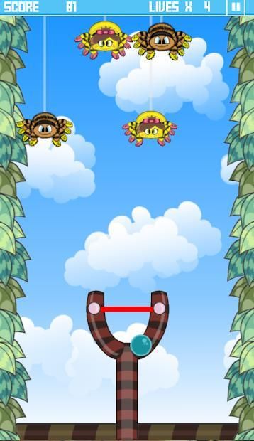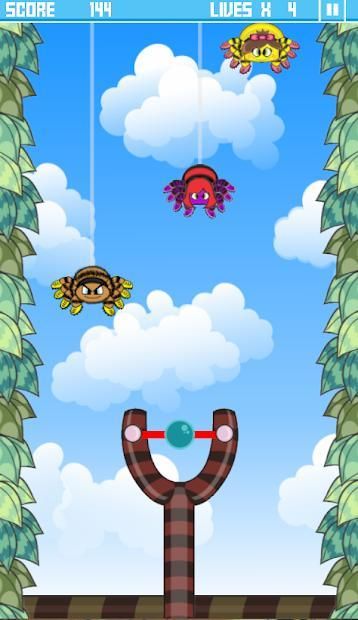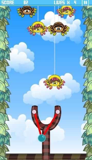 A spider invasion is happening and you must use the slingshot to burst as much as possible before they reach down.