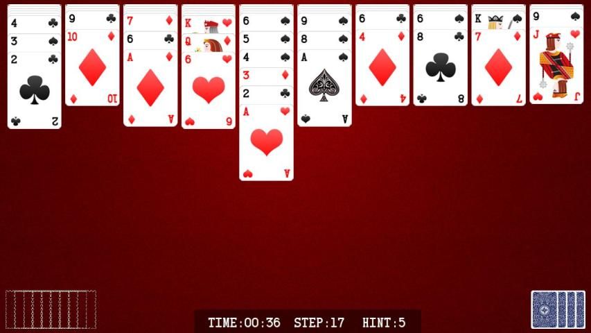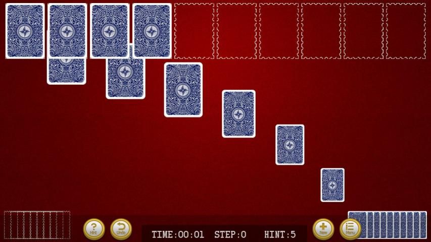 Tujuan permainan ini adalah untuk menghapus semua kartu dari meja dalam jumlah paling sedikit bergerak. 54 kartu dibagikan ke sepuluh tumpukan, menghadap ke bawah kecuali untuk kartu atas yang dibagikan menghadap ke atas. Sisa 50 kartu ditumpuk di sudut kanan bawah (dalam modus landscape) atau di pojok kanan atas (dalam modus potret) dan dapat ditangani ke meja pada 10 pada suatu waktu. Ada tiga tingkat kesulitan: 1 suit (pemula), 2 jas (menengah) dan 4 setelan (lanjutan). Untuk menghapus kartu dari meja, pemain harus merakit kolom yang diselenggarakan dalam urutan Raja untuk Ace - K, Q, J, 10, 9, 8, 7, 6, 5, 4, 3, 2, A yang menghilangkan kartu dirakit dari table. Pada 2 jas (menengah) dan 4 setelan (lanjutan) tingkat, kartu juga harus sesuai setelan. Ketika pemain kehabisan bergerak, pemain dapat menangani 10 kartu baru ke meja. Pemain diperbolehkan untuk memindahkan satu atau lebih kartu sekaligus. Pemain bisa bergerak lebih kartu sekaligus jika semua kartu adalah dari jenis yang sama dan diatur dalam urutan.