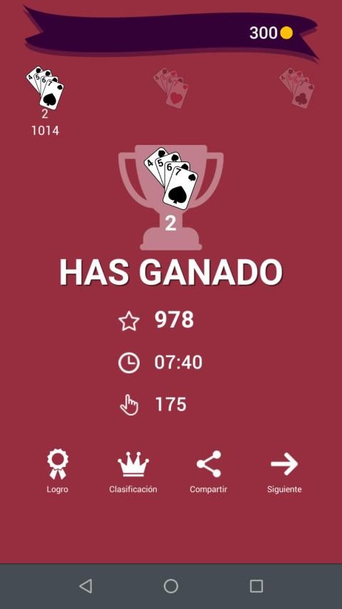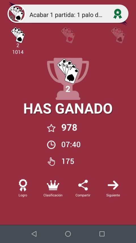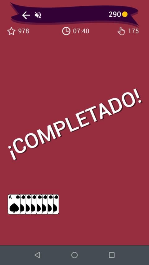 El juego de cartas Solitario Spider termina cunando no quedan cartas en el tablero de juego. Debes tener en cuenta de que no en todos los juegos lo lograrás.