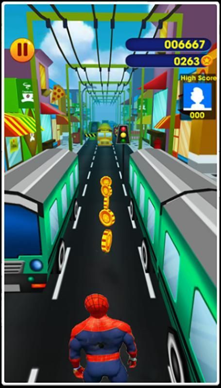 Kota tema pertandingan berjalan, tetapi Anda harus berhati-hati! Banyak bahaya, kesulitan, atau datang bus membela jalan Anda melalui jalan kota. menjadi yang terbaik Spiderman pelari, berlari secepat Anda bisa, melompat atau slide untuk menghindari rintangan.