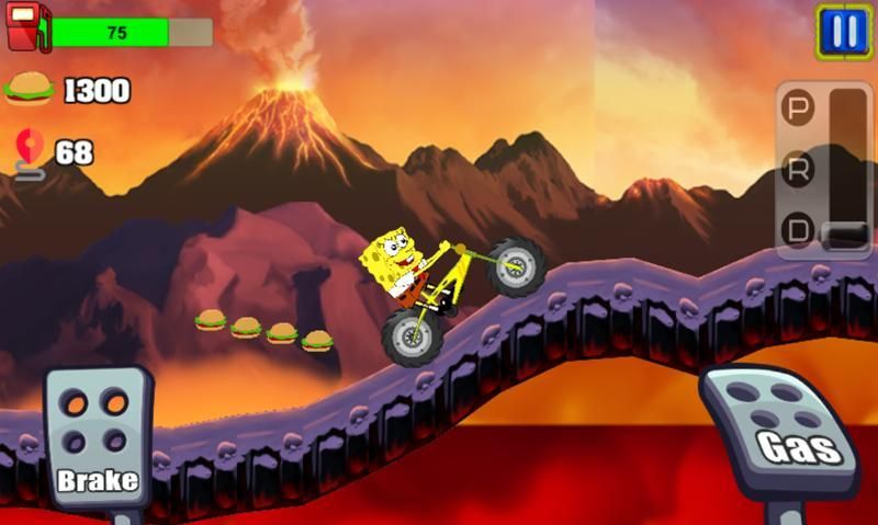 when all bikini bottom residents are busy ruled by the evil plankton the sponge gets the mission from Mr. Krabby to look for magic shells to defeat the evil plankton, then Mr. Krabby gives a super bike from Kraby that can go very fast up and down and climb the mountain.