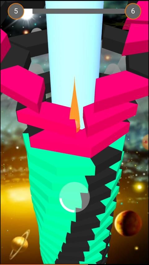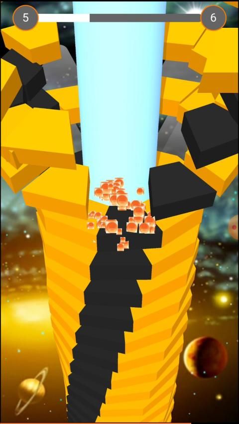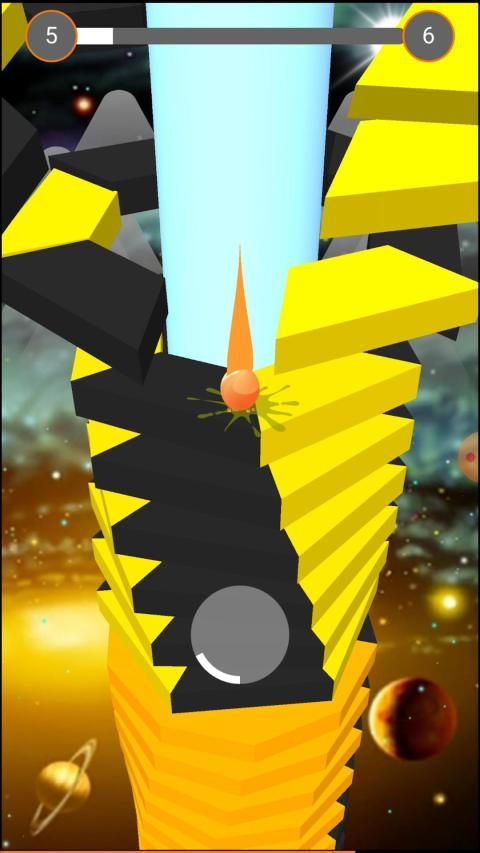 Tekan dan tahan pada layar dan biarkan bola jatuh tanpa menyentuh rintangan! Tahan selama mungkin untuk membuat booster dan memecahkan blok hitam. Biarkan bola jatuh dari tumpukan helix.