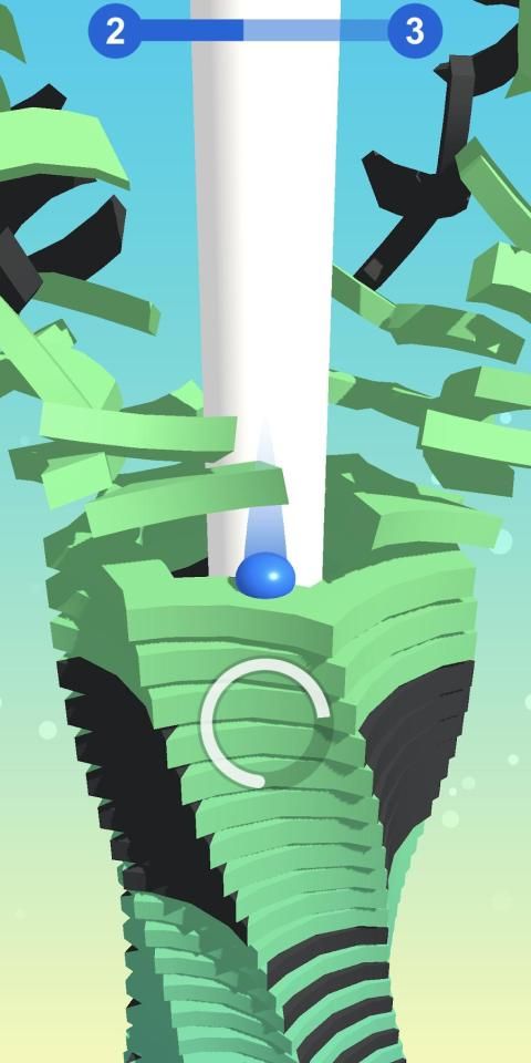 Press and hold on the screen and let the ball go down without touching the obstacles! Hold as long as possible to make combo and break the black blocks. Let the ball fall down from the helix stacks.