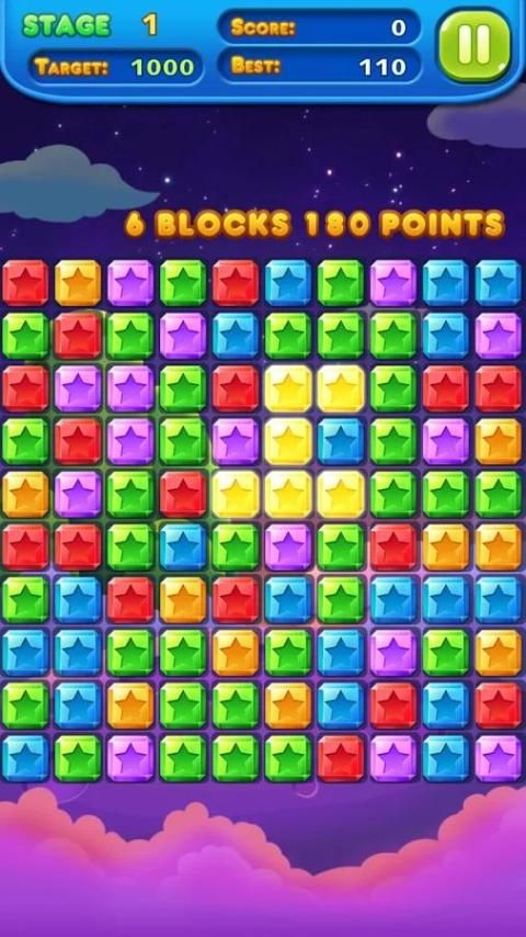 1. Tekan pada dua atau lebih blok bintang untuk membuat mereka menghancurkan.