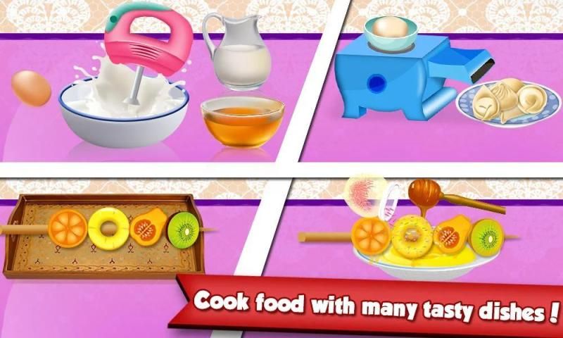 Ada level tak terbatas untuk dimainkan dari hidangan penutup hingga makanan laut. Anda harus memasak cepat dan menangani semua kebutuhan anggota keluarga dan mendapatkan lebih banyak koin.