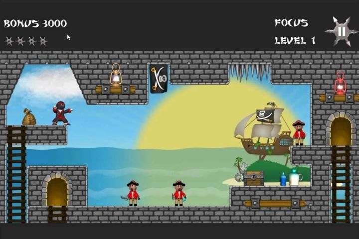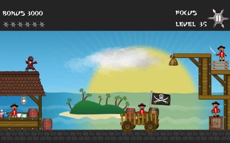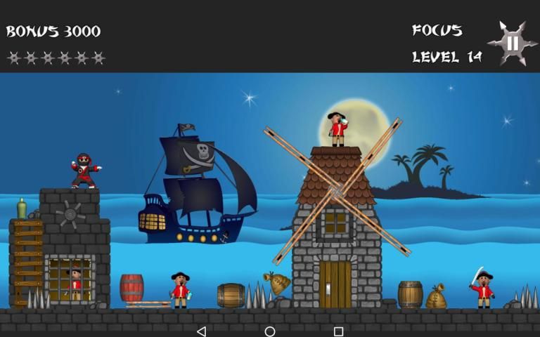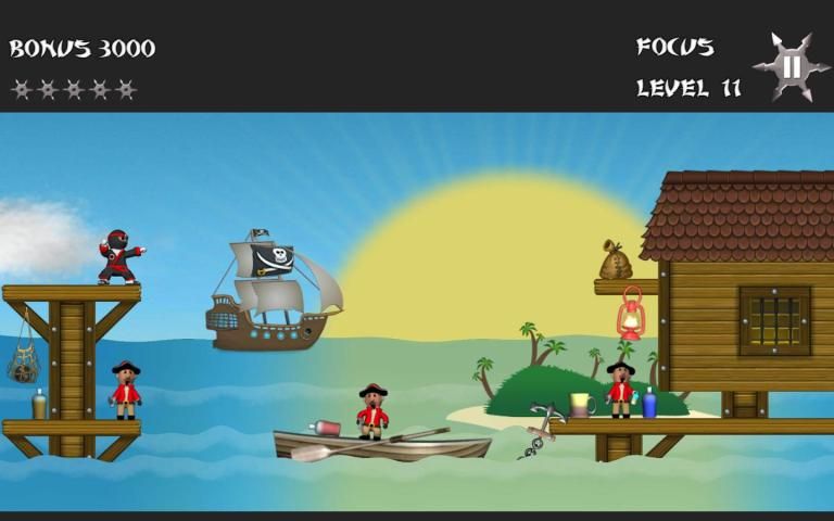 Bintang Ninja adalah permainan memantul di mana Anda bangkit melemparkan bintang untuk melumpuhkan semua bajak laut dalam rangka untuk melanjutkan ke tingkat berikutnya. Disajikan dengan keluarga menyenangkan dengan 50 tingkat animasi lucu, musik besar, fisika Ragdoll dan sejumlah besar lucu olok-olok bajak laut.