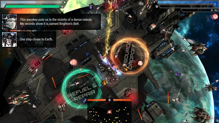 * Gunakan railguns untuk memusnahkan kapal luar angkasa musuh!
