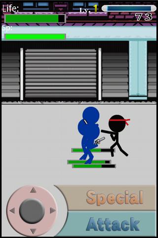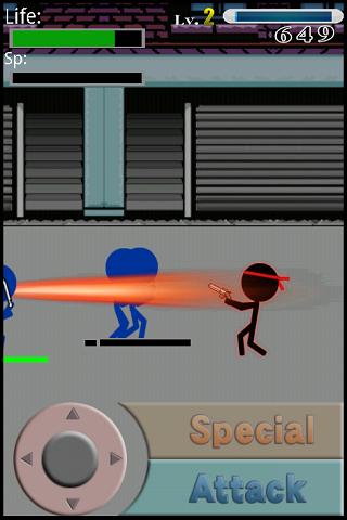 Dynamic Fighting Action by Stick man is Developing Nowquot;Stick Fightersplusquot; is evolutionary version of quot;Stick Fightersquot;, which is a stick man fights with enemies.ActionThe stick man is moved to eight directions by key of left side. When you move black circle button to right on eight directions key, the stick man is moved to right. Other ways are same things. When you push quot;Attackquot; button, the stick man attacks enemy. Also, you can use quot;Specialquot; button in this version. When special gage is maximum, push quot;Specialquot; button The stick man use special moveItemIf you find a box on street, break it You might get an item in the boxSometimes, the box is empty.Juice: the stick man gets recovery of quarter life.Hamburger: the stick man gets recovery of half life.Glove: the stick man equipments glove.Pipe: the stick man equipments pipe.Gun: the stick man equipments Gun.RnkingThis game has international and domestic ranking. Can you put your name on the leaderboard also?