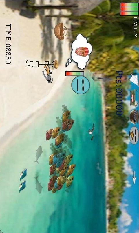 48 levels of play in 4 unique and colorful island locations. Touch any target to shoot! Fun arcade entertainment. Stickman shoots fish, collects them with the dragline, deposits fish in fish basket, eats fish to gain energy, throws bait to attract fish closer to shore, and changes arrows to shoot new wildlife.