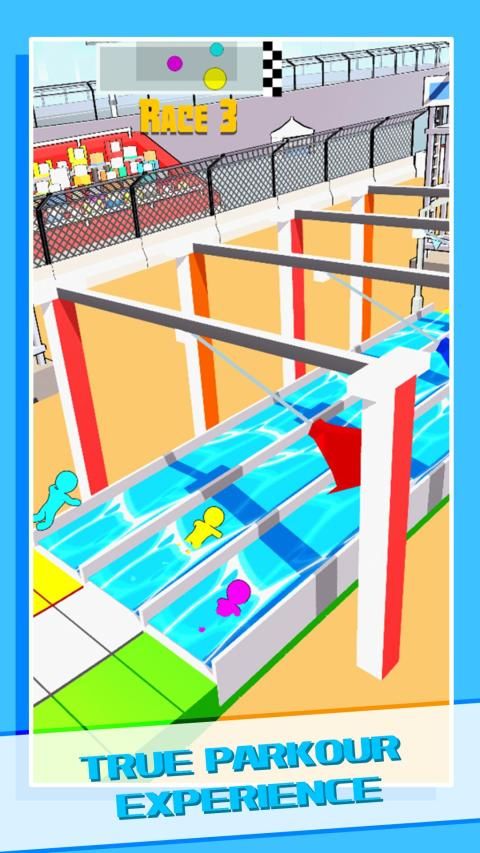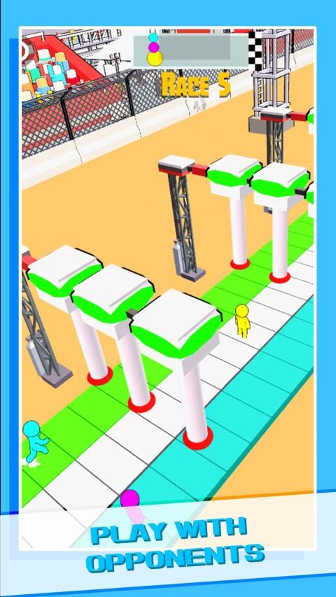 Sangat menarik dan mudah dimainkan game balap 3D. Hindari berbagai jenis rintangan, tantang lebih keras dan selesaikan permainan. Lebih dari rintangan, tangga, berenang. Pastikan untuk menghindari semua rintangan dan mencapai garis finish dengan aman. Tiga pemain bermain pada saat bersamaan. Anda harus mengalahkan mereka untuk menang.