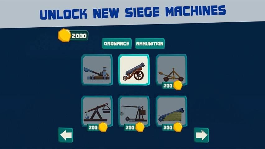 Dapatkan poin untuk setiap saingan berhasil memukul dan membuka ketapel baru yang kuat dan mesin pengepungan seperti trebuchet atau meriam - periksa semuanya dan memilih yang terbaik!
