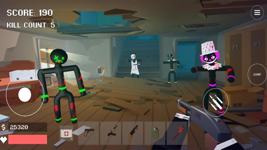Menakjubkan kombinasi grafis pixel modern, penembak orang pertama, stickman dan zombie dengan berbagai efek khusus!