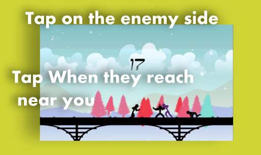 Kontrol: Tunggu rentang tertentu lalu ketuk sisi (kiri atau kanan) untuk mengalahkan musuh di sisi itu. Ketuk cepat untuk tindakan yang lebih realistis.