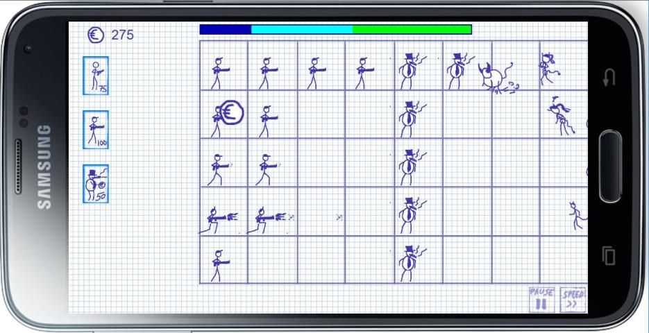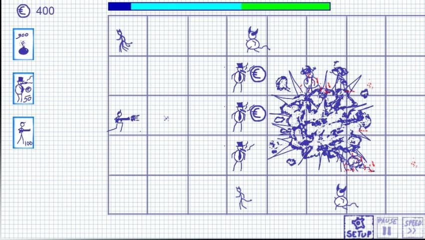 Anda memiliki stickman berbeda dengan resistensi yang berbeda untuk serangan setan serta kecepatan yang berbeda dan kekuatan menembak.