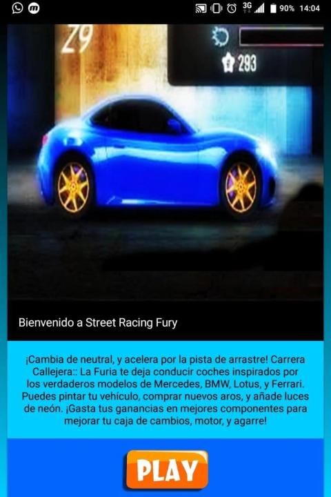 ¡Cambia de neutral, y acelera por la pista de arrastre! Carrera Callejera:: La Furia te deja conducir coches inspirados por los verdaderos modelos de Mercedes, BMW, Lotus, y Ferrari. Puedes pintar tu vehículo, comprar nuevos aros, y añade luces de neón. ¡Gasta tus ganancias en mejores componentes para mejorar tu caja de cambios, motor, y agarre!