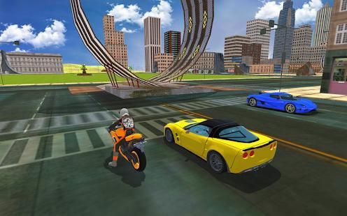 is the latest game for fun and entertaining drive super fast sports bikes in open massive city, doing crazy amazing stunts on huge stunt ramps and pick cash and unlock various New sports bike in garage. Race through the busy streets and city are full of traffic filled with ambulances, ice cream vans, police cars, taxis and sports cars.