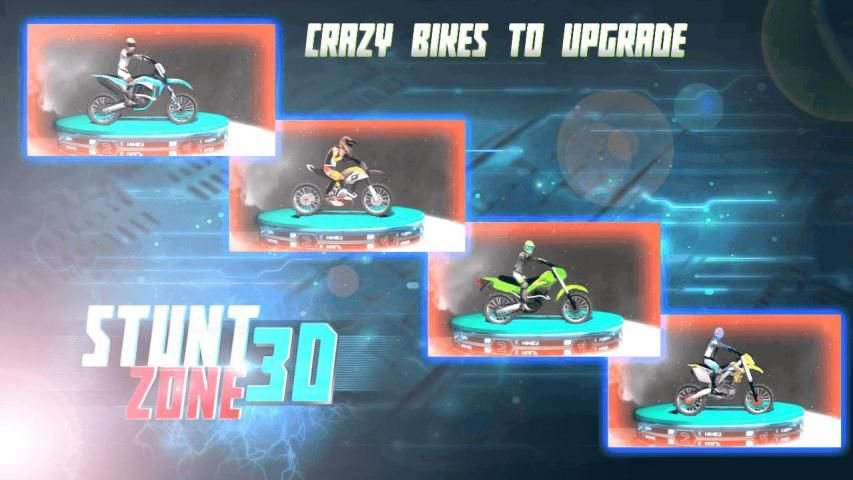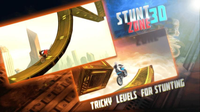 "STUNT ZONE 3D" adalah tonggak terbaru dalam dunia simulasi aksi biker. Multi Touch Studios hadir untuk Anda kombinasi mania, kegilaan dan balap sepeda. Ini adalah fisika berbasis akrobat sepeda balap permainan di mana Anda dapat memilih dari sepeda jalan, helikopter, motor sport, menjadi pemberani dan melakukan stunts pemberani gila. Periksa kinerja Anda sebagai pembalap sepeda dengan statistik tingkat di akhir setiap tingkat. Waktu adalah kendala Anda sehingga tali helm Anda dan menyelesaikan kursus akrobat sepeda motorcross kustom Anda dalam permainan benar-benar GRATIS ini.