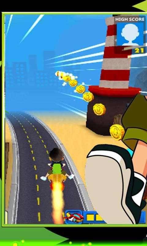 Mainkan misi selancar di kota dalam 10 transformasi pelindung, pertempuran omnitrix dan 10 set untuk membantu para pahlawan memanfaatkan 10 bentuk kekuatannya untuk mengatasi semua bahaya untuk menjadi seorang pelari pembela