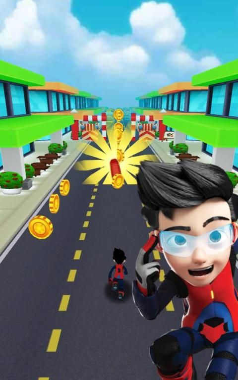 Subway Ejen Ali Rush 3D adiktif permainan berjalan yang super gila, Surf lari secepat Anda bisa! Meningkatkan kekuatan Anda & kecepatan dengan koin yang diterima (Tidak Dalam App Pembelian Needed).