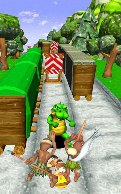 to win the high score and jump over the train or monkey in your way. Many of the monkey or turtle will be in your way. Run and race to climb on monkey hurdles while jumping and avoiding from obstacles on the running track. Race and jump through trains and animals coming in front of you. Be aware of train run and jump safely for long running time.