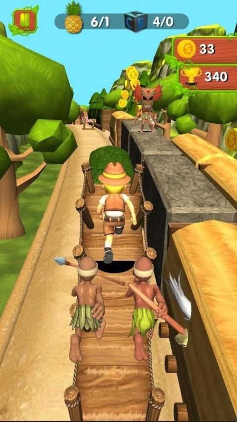 Naik melalui hutan, slide, melompat dan menggesek untuk menghindari berbagai rintangan.