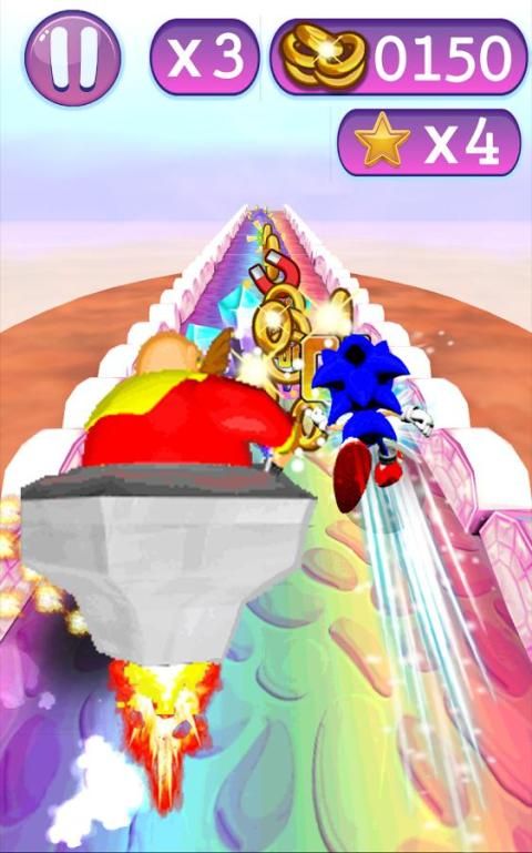 Berlari, melompat, dan bangkit pada tanaman merambat seperti Anda membantu super sonic berlari lebih cepat dari Super Sonic besar! Menjaga kontrol penuh dengan sangat responsif tekan tunggal-jari dan menggesek kontrol.