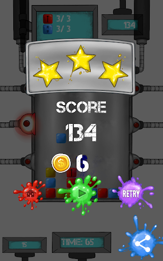Maneuver the falling paint blocks to the right positions to match 3 or more blocks of the same color to score. Blast blocks out of suckers to combine paint blocks creating Power Blocks and new color combinations. Power Blocks have different abilities depending on their color. Create all 7 colors of Power Block and learn how they can help you master the paint lab.