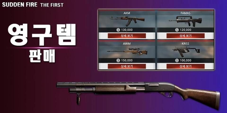 - 무기는 영구제로만 판매합니다.