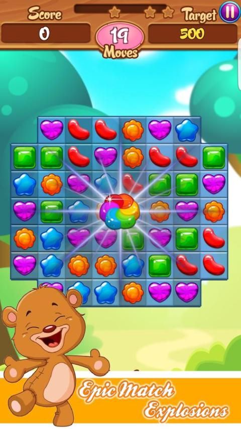 - Pertandingan 3 atau potongan permen lebih pada Spot manis untuk terburu-buru gula nyata! Ledakan melalui papan dan skor combo besar