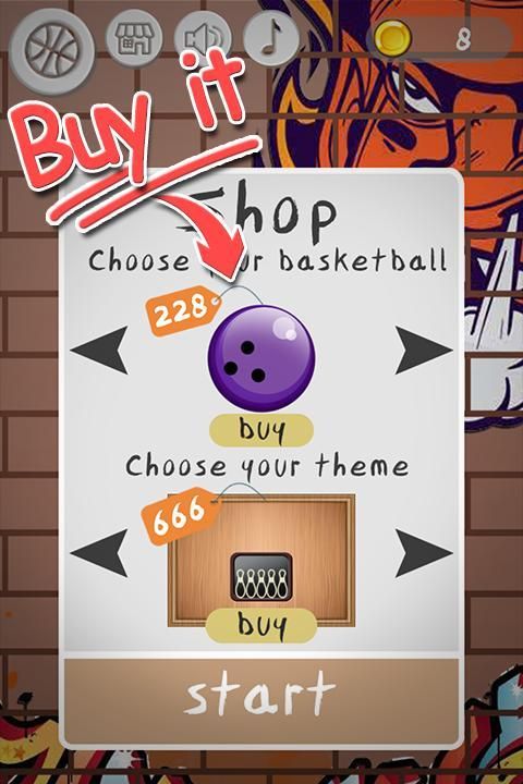 - Mulai menembak ke keranjang dan mencoba untuk mengalahkan skor tinggi Anda.