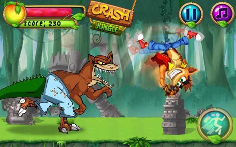 Juga ingat bahwa Crash Bandicoot memiliki stamina yang terbatas dan jika Anda kehabisan, Anda tidak bisa lari lagi dan Dinosour akan menangkap Anda. Jadi, Anda harus mengumpulkan item karena Anda menjalankan untuk mengisi stamina Anda. Perhatikan bahwa Anda dapat melipatgandakan melompat dan menggunakan keterampilan ini sangat penting untuk maju melalui permainan. Bandicot protagonis terus mencari super Bandicot Jungle Run.