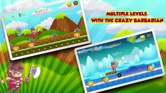 clear all enemies in your way and defeat all bosses. "Super Barbarian World" will give you classic feel throughout the game with side scrolling view.