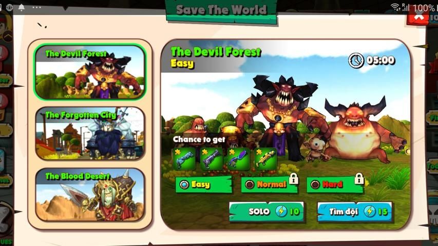 - LOTS OF WEAPONS: There are a lot of Guns and Secondary Weapon for you choose. Each weapon have different ability. For example: gun "Battleworn Phase Gun" can slow move speed's enemy, gun "Hope of the Phoenix" can shoot 2 bullets at the same time. Axe "Ebon Broadaxe" will increase Health....