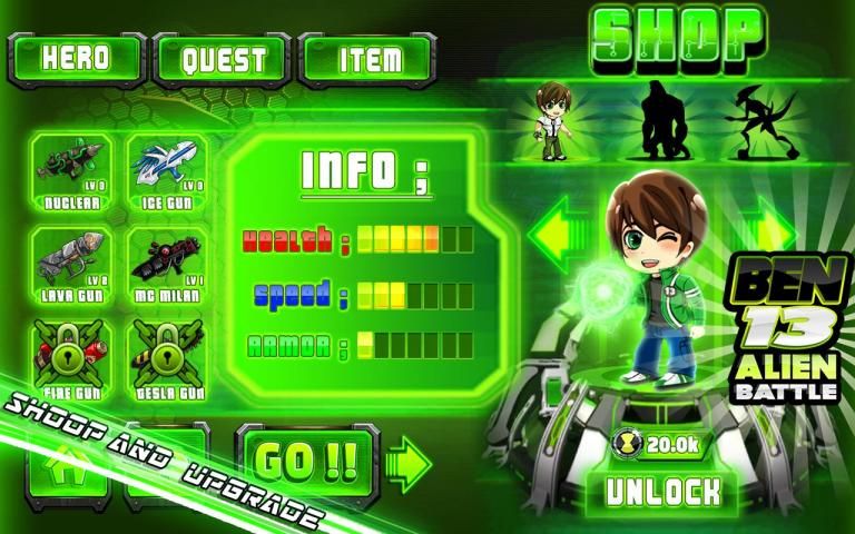 - Beli pahlawan baru dengan koin, Ben hijau siap, Anda dapat Ben White, dan lebih karakter