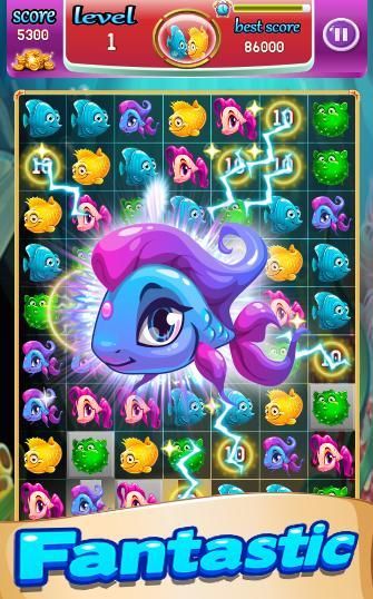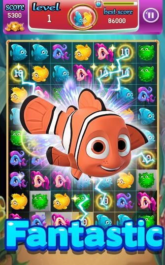 The game is focused on matching 3 or more fish