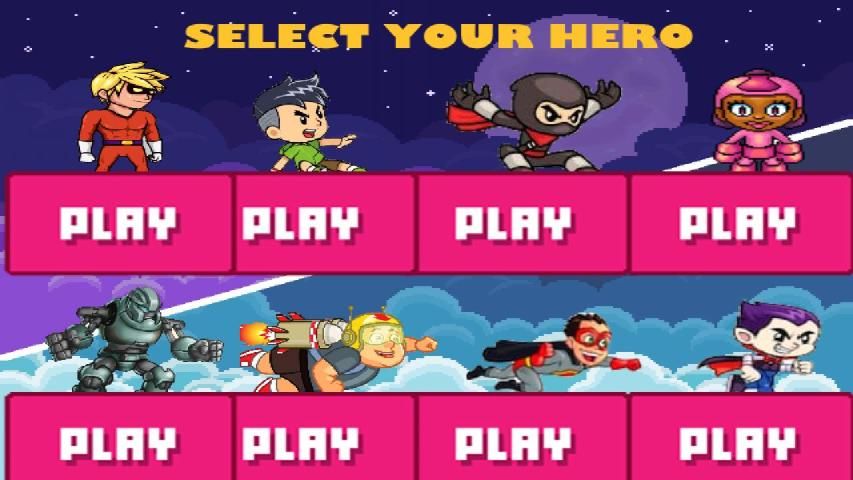 Play along as a large number of characters - Dinosaur , Super boy , Robot man , WONDER princess , Ninja warrior , Spider kid , Iron hero , Captain Warrior , Smash , Super king ,