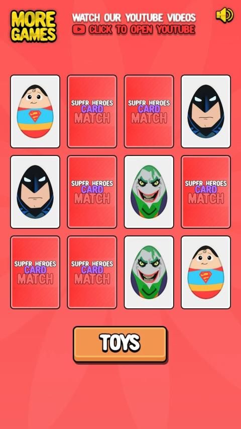 Card Match is a funny game for children combining a cool character's design, a chocolate egg and a surprise toy, guess the cards get an egg and collect awesome toys!