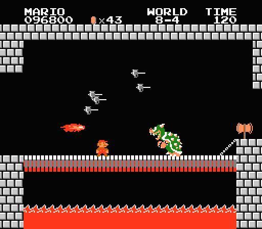 The game consists of eight worlds with four sub-levels called "stages" in each world." The final stage of each world takes place in a castle where Dragoon is fought above a suspension bridge; the first seven of these Dragoons are "false Dragoons" whom are actually minions disguised as him, whilst the real Dragoon is found in the 8th world. Dragoon and his decoys are defeated by jumping over them and reaching the axe on the end of the bridge, although they can also be defeated using a power up. The game also includes some stages taking place underwater, which contain different enemies. In addition, there are bonuses and secret areas in the game. Most secret areas contain more coins for Player to collect, but some contain "warp pipes" that allow Player to advance directly to later worlds in the game without completing the intervening stages. After completing the game once, the player is rewarded with the ability to replay the game with changes made to increase its difficulty.